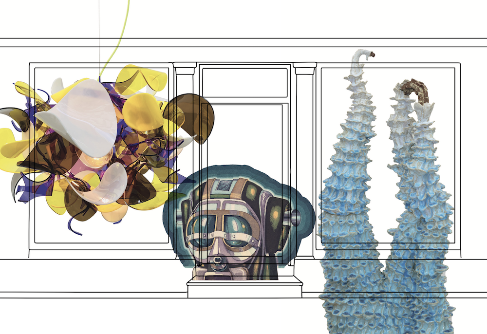 Die Zusammenstellung der drei Positionen eröffnet einen spannungsreichen Dialog: von Bettina von Arnims gesellschaftskritischen Bildwelten über Sebastian Stöhrers spekulative Organismen bis hin zu Stefan Wielands leuchtenden Objektinszenierungen. Gemeinsam ist den Arbeiten eine Auseinandersetzung mit Übergängen – zwischen Mensch und Maschine, Natur und Artefakt, Funktion und Fiktion.
