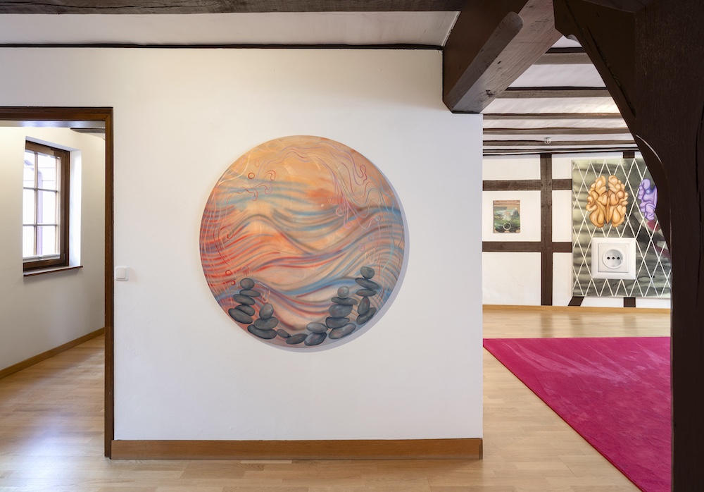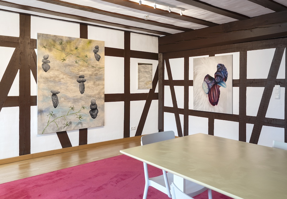 Sie nimmt das Gegebene auseinander und fügt es neu und offen wieder zusammen. In einer gewandten und spielerisch freizügigen Kombinatorik schafft sie aus einer Vielzahl bereits bildgewordener Versatzstücke und motivischer Zitate ihre Gemälde. Und diese sind eigenwillig und wandelbar, fantastisch, anrührend, sinnlich und aberwitzig.