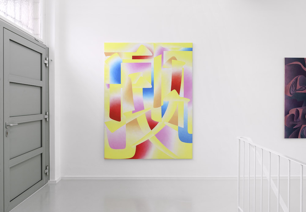 Alexander Wolff has developed a large part of his current paintings on the basis of Chinese characters. For Wolff these characters, which feature in a range of digital typographies, provide graphic material and possibilities for a formal vocabulary that he employs to construct his compositions. In these, the Chinese characters can be made out more or less clearly each time while appearing to dissolve in the colors, shapes, and surfaces of the painting. The painting process itself is neither visible nor can it be precisely traced, yet in some cases we feel as though we are able to follow the loose choreography.