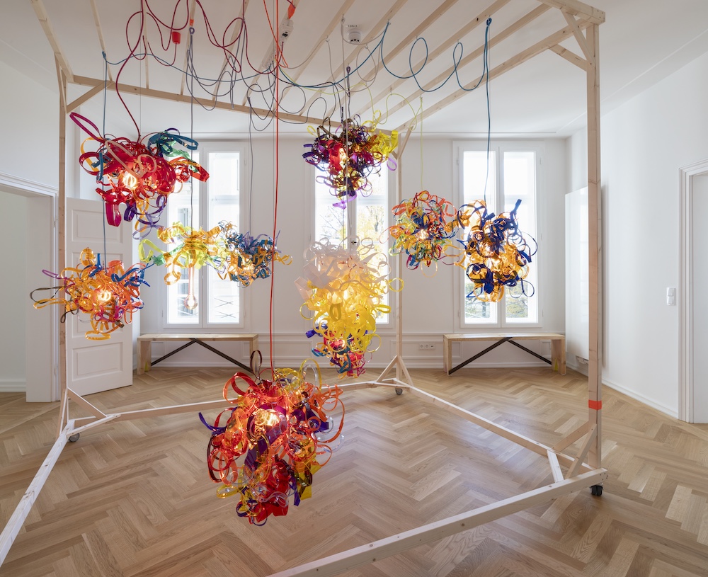 Auf einer Fläche von rund 500 Quadratmetern bot die Villa Raum für die künstlerischen Positionen von elf Künstlerinnen und Künstlern unserer Galerie, die jeweils ihre eigenen Einzelausstellungen über drei Etagen hinweg präsentierten. Dieses kuratorische Konzept ermöglichte es den Besucherinnen und Besuchern, in vielfältige künstlerische Welten einzutauchen und die Bandbreite zeitgenössischer Ausdrucksformen in einem historischen Ambiente zu erleben. So entstand ein spannender Dialog zwischen Vergangenheit und Gegenwart, zwischen architektonischem Erbe und zeitgenössischer Kunst.