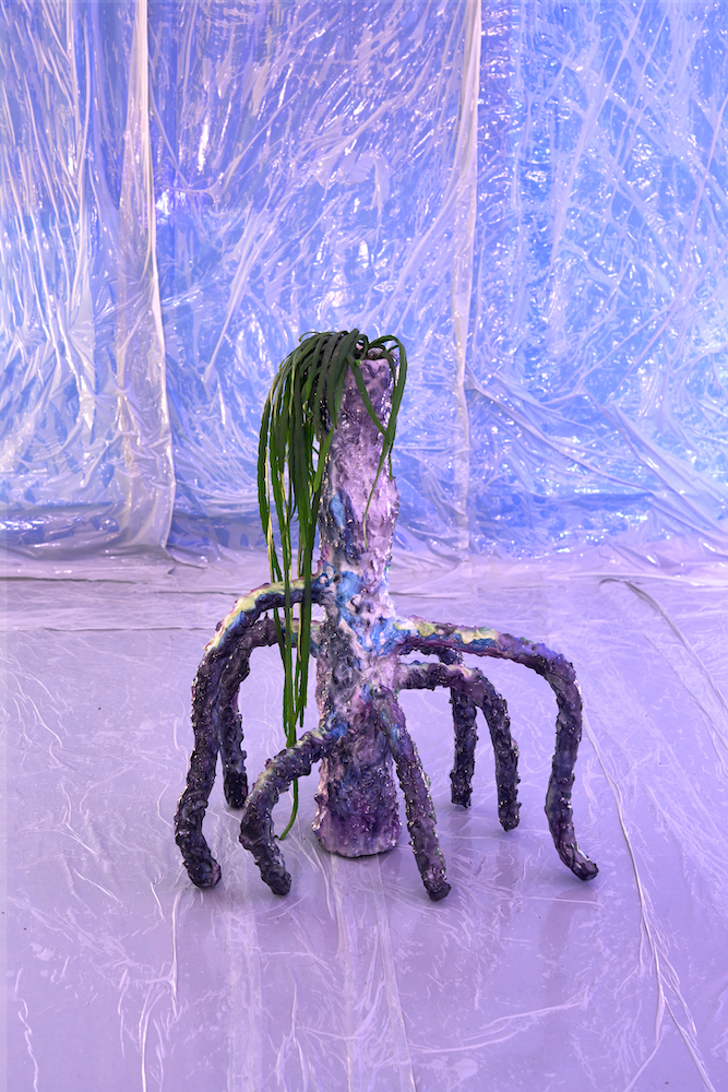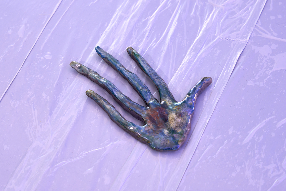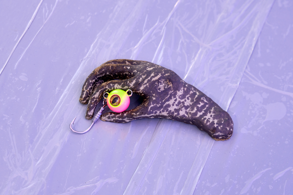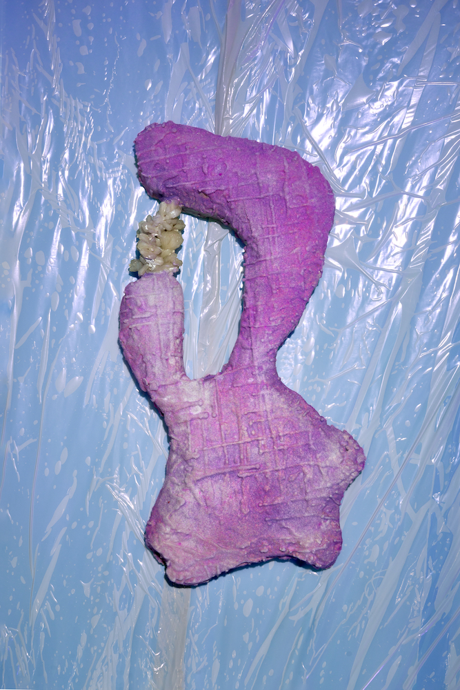 Tina Kohlmann’s practice operates precisely within this charged field between materiality and imagination, between corporeality and speculation. Her objects read like remnants of an unfamiliar culture – relics from a sphere that eludes established orders. Her sculptures are at once humorous and uncanny, artificial and vulnerable. The exhibition space becomes a liminal zone in which texture and light compress into a blue membrane between reality and imagination.
